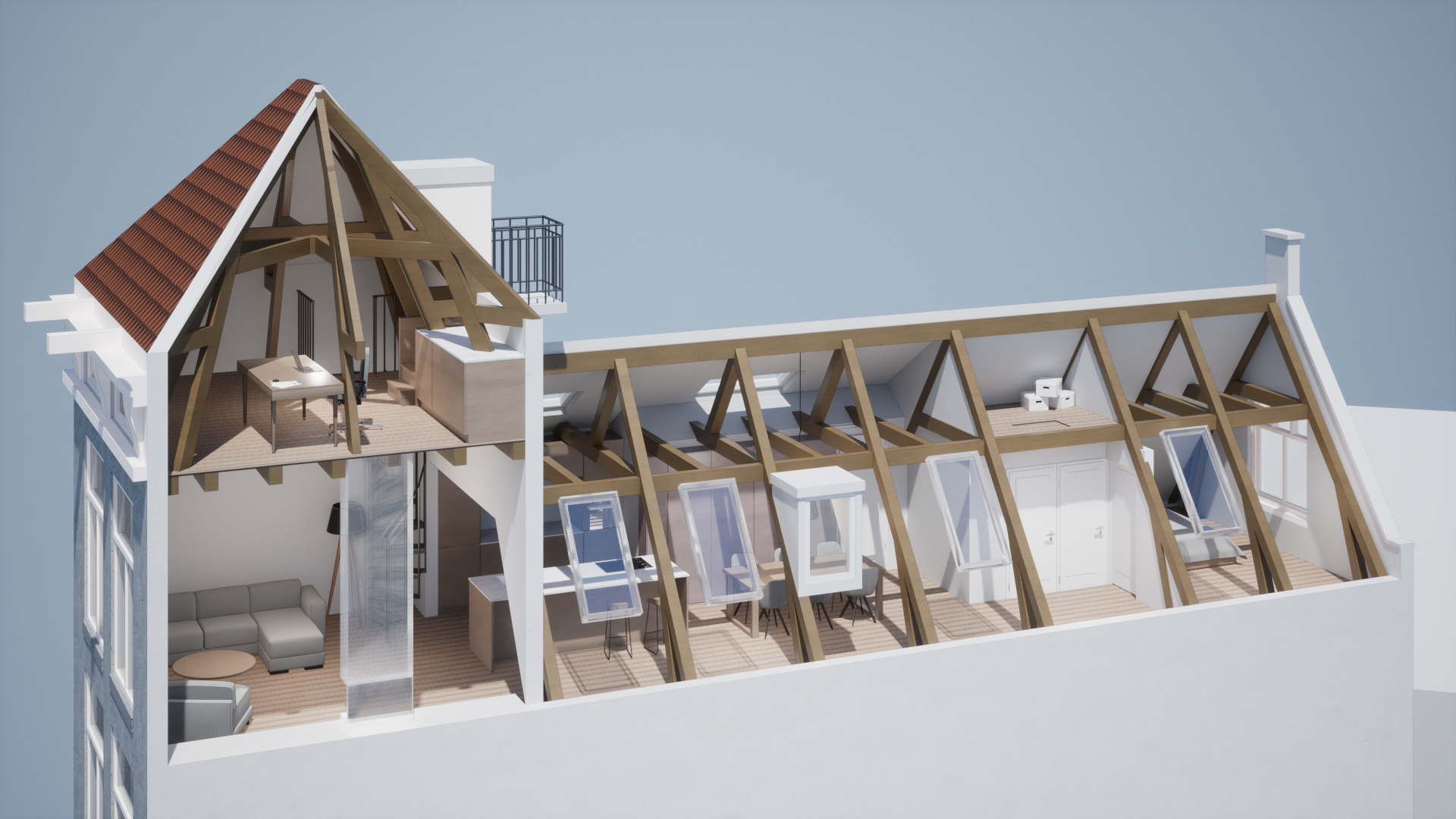 De verbouwing van een bovenverdieping in een grachtenpand in Amsterdam.